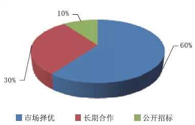 通過調研,所調查參與者單位對固體絕緣環網柜產品通過市場擇優的占比60%;長期合作的占比30%;聯盟無;公開招標的占比10%。具體如下圖3所示。