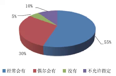 在參與者所接觸的項目中,針對是否經常有指定廠家或品牌的問題,認為經常會有的占比55%;偶爾會有的占比30%;沒有的占比5%;不允許指定的占比10%。如圖4所示。
