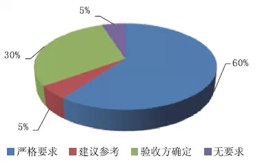 針對參與者所接觸到的項目,圍繞是否對固體絕緣環網柜產品的性能有嚴格要求與否,認為有嚴格要求的占比60%;建議參考的占比5%;驗收方確定的占比30%;無要求的占比5%。如圖5所示。
