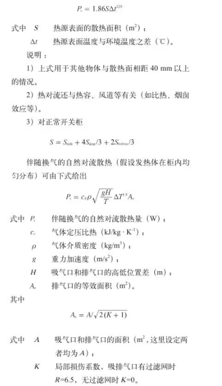 (2)熱對流是物體表面與相接觸的流體間有溫差時出現(xiàn)的傳熱現(xiàn)象。柜體表面、氣箱表面或熱源表面的自然對流散熱可用下式估算