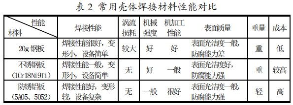 環網柜焊接氣箱常用材料主要有20g鋼板、不銹鋼板(1Cr18Ni9Ti)、防銹鋁板(5A055052)等。其性能對比見表2