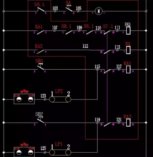 所以在該圖上按下合閘按鈕SB1,首先繼電器KA1會得電吸合,吸合后合閘回路KA1常開觸點會變常閉狀況,假如承認下門已關好,阻隔開關處于合閘狀況,接地開關處于分閘狀況,電機已儲能。此刻合閘線圈得電作業,牽動開關合閘組織方位,開關合閘。所以咱們在合不上閘的情況下,首先要判別所有的輔佐觸點狀況(即接地開關狀況、阻隔開關狀況、電機儲能狀況、下門封閉狀況)由硬件設施到回去狀況去解決,相必會事半功倍。